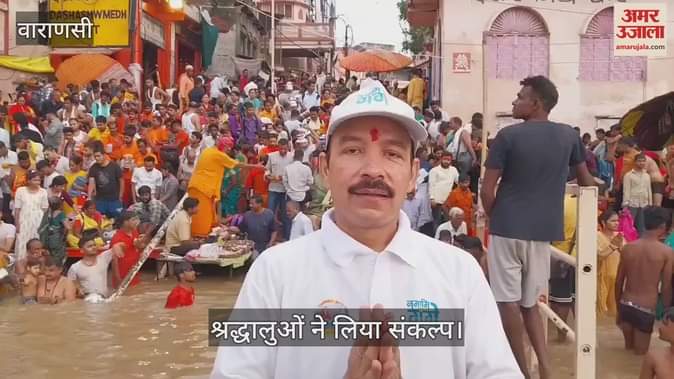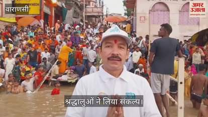 नमामि गंगे के साथ श्रद्धालुओं ने दशाश्वमेध घाट पर गंगा निर्मलीकरण का लिया संकल्प