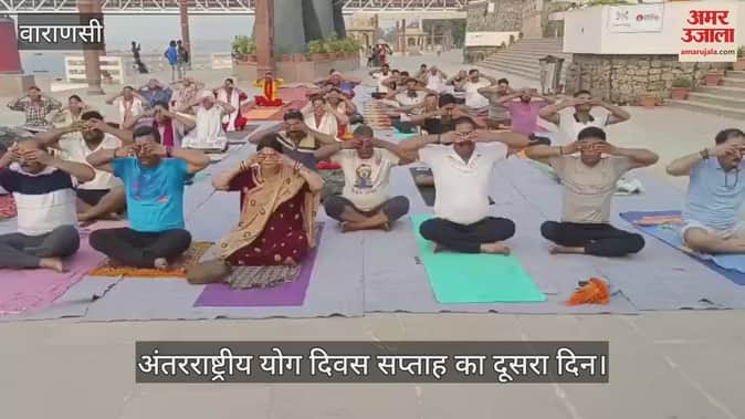 वाराणसी के नमो घाट पर अंतरराष्ट्रीय योग दिवस सप्ताह का दूसरा दिन, नमो घाट पर सैकड़ों लोगों ने किया अभ्यास