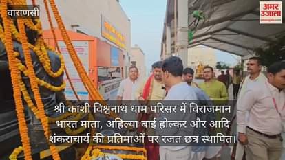 श्री काशी विश्वनाथ धाम में एक विशेष धार्मिक एवं सांस्कृतिक आयोजन हुआ। धाम परिसर में विराजमान भारत माता,अहिल्या बाई होल्कर और आदि शंकराचार्य की प्रतिमाओं पर रजत सुशोभित छत्र की स्थापना की गई। तेज गर्मी और उष्मा से संरक्षित करने के उद्देश्य से न्यास ने निर्णय लिया।