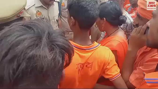 VIDEO : वाराणसी में कांवड़ियों ने जाम किया सड़क, यातायात प्रभावित; पहुंची पुलिस