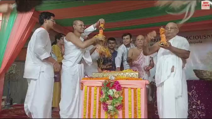 VIDEO : इस्कॉन के प्रांगण में 51 रजत कलश में 51 प्रकार के द्रव्य से हुआ लड्डू गोपाल का महाभिषेक