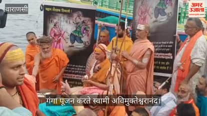 VIDEO: लखनऊ यात्रा से पहले गंगा घाट पहुंचकर स्वामी अविमुक्तेश्वरानंद ने की पूजा