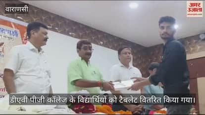 VIDEO : डीएवी पीजी कॉलेज के विद्यार्थियों को टैबलेट वितरित किया गया
