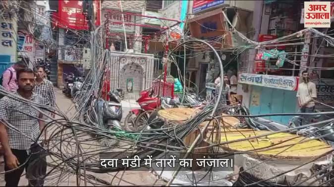VIDEO : वाराणसी के सप्तसागर दवा मंडी में तारों का जंजाल