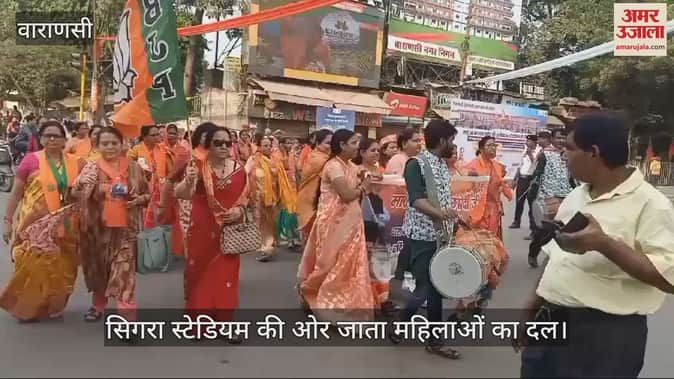 वाराणसी के सिगरा स्टेडियम की ओर बीजेपी की महिला शक्ति का उत्साह देखने को मिल रहा है। महिला कार्यकर्ता ढ़ोल बजाते हुए स्टेडियम की ओर पहुंच रही हैं।