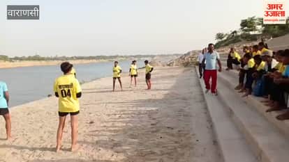 गंगा की रेती पर महिला हैंडबॉल प्रतियोगिता का ट्रायल मैच, VIDEO