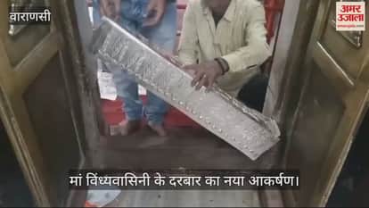 मां विंध्यवासिनी मंदिर के प्रथम निकास द्वार पर बृहस्पतिवार को चांदी का गेट लगाया गया। बिहार के औरंगाबाद जिले के एक भक्त द्वारा चांदी का गेट व पत्तर मां के चरणों में समर्पित किया गया। दरवाजा और लगाए गए पत्तर का कुल वजन 76 किलो 800 ग्राम है। श्रीविंध्य पंडा समाज व जिला प्रशासन के अधिकारियों की अनुमति के बाद बृहस्पतिवार की शाम चार बजे से प्रथम निकास द्वार का दरवाजा बंद कर कार्य को शुरू हुआ। द्वितीय निकास द्वार से वीआईपी व आम श्रद्धालु के दर्शन पूजन का कार्य सुचारू रूप से चलता रहा। तीर्थ पुरोहित सूर्य प्रसाद मिश्रा फन्नर ने बताया कि विगत कई वर्षों से प्रतिमाह दानदाता औरंगाबाद निवासी व्यापारी रविंद्र कुमार सिंह परिवार के साथ दर्शन पूजन करने के लिए आते थे। मां के चरणों में सेवा भाव करने की जिज्ञासा उठी। उन्होंने 76 किलो 800 ग्राम का चांदी का गेट एवं पत्तर मां के चरणों में समर्पित किया। इससे प्रथम निकास द्वार पर दरवाजा व नीचे पत्थर पर चांदी का पत्तर लगाया गया। श्रीविंध्य पंडा समाज के अध्यक्ष पंकज द्विवेदी ने बताया कि मां विंध्यवासिनी के तीर्थ पुरोहित सूर्य प्रसाद मिश्रा के यजमान द्वारा मां के चरणों में चांदी का गेट समर्पित किया गया है। इसको लगवाने के लिए पंडा समाज कार्यकारिणी की बैठक में सर्वसम्मति से निर्णय लिया गया। जिलाधिकारी प्रियंका निरंजन, एडीएम वित्त एवं राजस्व शिव प्रताप शुक्ल, नगर मजिस्ट्रेट द्वारा अनुमति लेने के पश्चात कार्य को शुरू किया गया। पहले यह द्वार पीतल का था।