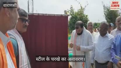 लाल बहादुर शास्त्री हवाई अड्डे पर स्टील के चरखे का अनावरण खादी एवं ग्रामोद्योग आयोग के अध्यक्ष मनोज कुमार नेकिया द्वारा किया गया। इस दौरान हर- हर महादेव के जयकारे लगाए गए।
