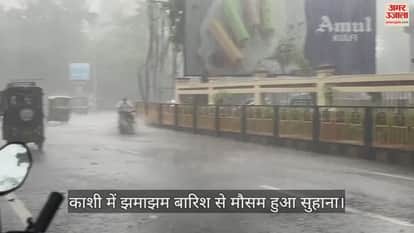 वाराणसी में सुबह से उमस भरी गर्मी से परेशान लोगों को गुरुवार की शाम झमाझम बारिश से राहत मिल गई। दोपहर बाद करीब तीन बजे अचानक मौसम ने करवट बदली और आसमान में काले बादल छा गए। तेज हवा के साथ मौसम का मिजाज बदल गया। थोड़ी ही देर में झमाझम बारिश शुरू हो गई।