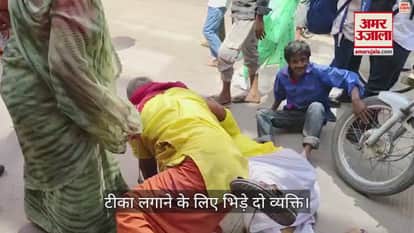 VIDEO : श्रद्धालुओं को टीका लगाने के लिए सरेराह भिड़े दो लोग, जमकर हुई मारपीट