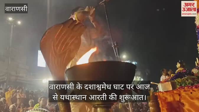 VIDEO : वाराणसी में 70 दिन बाद यथास्थान हुई भव्य गंगा आरती, देखें वीडियो