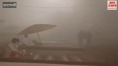 VIDEO : वाराणसी में इस ठंड का पहला कोहरा, घाट पर छाया घुप अंधेरा, सेल्फी और फोटो का चला दाैर