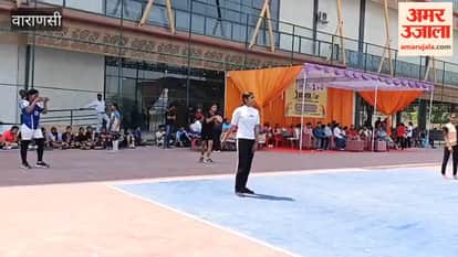 सिगरा स्टेडियम में खेलो इंडिया के तहत शुरू हुए महिला वॉलीबाॅल प्रतियोगिता में खेलतीं सरदार पटेल इंटर कॉलेज बभनियांव व राजकीय बालिका इंटर कॉलेज चोलापुर की खिलाड़ी।