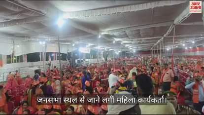 VIDEO : केंद्रीय गृहमंत्री के आगमन से पहले वापस जाने लगीं महिला कार्यकर्ता, भाजपा नेताओं ने की रुकने की अपील