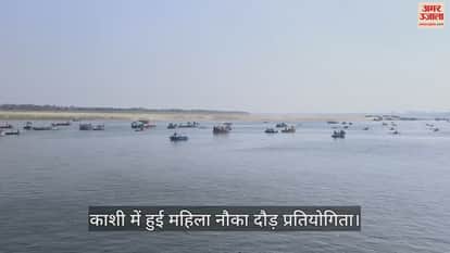 VIDEO : नौका दौड़ में शामिल हुईं 20 से अधिक महिलाएं, मणिकर्णिका घाट से पंचगंगा घाट तक दिखा गजब का नजारा