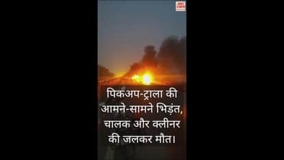 VIDEO : कानपुर में पिकअप और ट्राला की जोरदार भिड़ंत, गाड़ियों में लगी भीषण आग, दो की जलकर मौत...सिर्फ अवशेष ही बचे