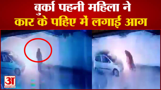 बुर्का पहनी महिला ने कार के पहिए में लगाई आग, घटना सीसीटीवी में हुई कैद