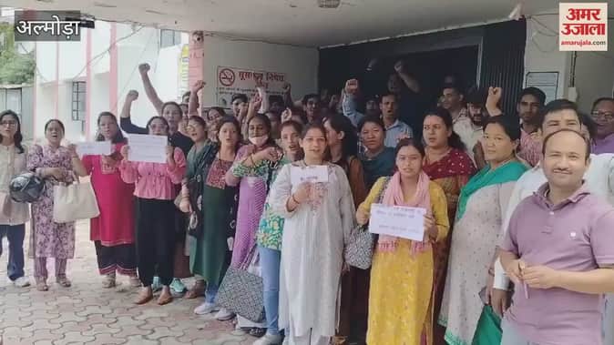 Almora: एनएचएम कर्मियों ने सीएमओ कार्यालय पर किया प्रदर्शन