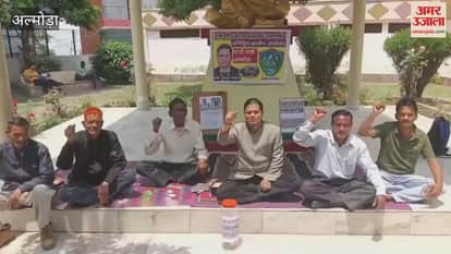 Almora: तीन सूत्री मांगों के लिए धरना जारी, सरकार के खिलाफ नारेबाजी की