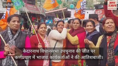 VIDEO : केदारनाथ विधानसभा उपचुनाव की जीत पर कर्णप्रयाग में भाजपा कार्यकर्ताओं ने की आतिशबाजी