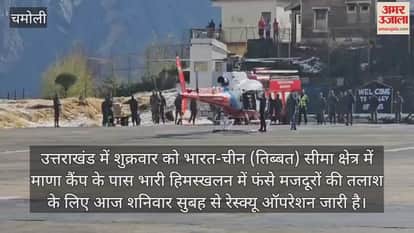 उत्तराखंड में शुक्रवार को भारत-चीन (तिब्बत) सीमा क्षेत्र में माणा कैंप के पास भारी हिमस्खलन में फंसे मजदूरों की तलाश के लिए आज शनिवार सुबह से रेस्क्यू ऑपरेशन जारी है। सुबह से 14 और मजदूरों को सुरक्षित लाया जा चुका है,जिसके बाद अब आठ मजदूरों की तलाश की जारी है। उपजिलाधिकारी चंद्रशेखर वशिष्ठ ने बताया कि मौसम खुलते ही माणा में रेस्क्यू शुरू किया गया। ज्योतिर्मठ से पहला हेली कुछ जवानों को लेकर रवाना हुआ। अब तक मिली जानकारी के अनुसार सुबह भारतीय सेना ने 14 और लोगों को बचाया है। कुछ को गंभीर चोटें आई हैं, जिनका इलाज चल रहा है।
