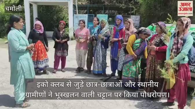 Gopeshwar: इको क्लब से जुड़े छात्र-छात्राओं और स्थानीय ग्रामीणों ने भूस्खलन वाली चट्टान पर किया पौधरोपण