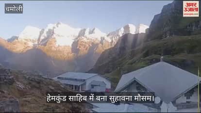 VIDEO : बर्फ से ढकीं चोटियां...सुहावने मौसम के बीच दिखा हेमकुंड साहिब का खूबसूरत नजारा