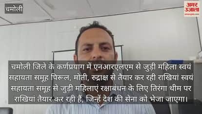 चमोली जिले के कर्णप्रयाग में एनआरएलएम से जुड़ी महिला स्वयं सहायता समूह पिरूल, मोती, रुद्राक्ष से तैयार कर रही राखियां स्वयं सहायता समूह से जुड़ी महिलाएं रक्षाबंधन के लिए तिरंगा थीम पर राखियां तैयार कर रही हैं, जिन्हें देश की सेना को भेजा जाएगा।महिलाओं द्वारा पिरूल, मोती, नाल, रूद्राक्ष, माचिस की तिलियों आदि से राखियां बनाई जा रही हैं। इन राखियों को सरकार और स्थानीय बाजार में बिक्री के लिए भेजा जाएगा।
