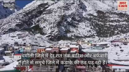VIDEO : बर्फबारी से कड़ाके की ठंड, बदरीनाथ धाम में जमी आधा फीट बर्फ
