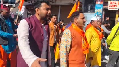 चम्पावत में हिंदू सम्मेलन कार्यक्रम के अवसर पर नगर में निकाला भव्य जुलूस। इस दौरान महिलाओं की ओर से कलश यात्रा भी निकाली गई।