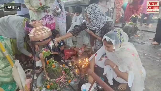 चंपावत जिला मुख्यालय के बालेश्वर महादेव मंदिर के सावन के सोमवार को सुबह से पूजा अर्चना का दौर चलता रहा। भारी बारिश के बीच श्रद्धालु आस्था के साथ मंदिर में पूजा के लिए आते रहे। श्रद्धालुओं ने शिवलिंग पर जलाभिषेक किया। बेल पत्री, धतूरा आदि चढ़ाया। मंदिर के महंत पवन गिरी ने बताया कि सावन माह में शिव की सांचे मन से पूजा करने से मन वांछित फल मिलता है।