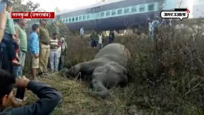 उत्तराखंड के लालकुआं के जंगल में रविवार सुबह रानीखेत एक्सप्रेस की टक्कर से एक नर हाथी की मौत हो गई। टक्कर इतनी जोरदार थी कि हाथी पटरी से कुछ दूरी पर जाकर गिरा। हादसा होते ही वहां हाथी को देखने वालों का जमावड़ा लग गया।