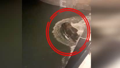 VIDEO: तेज बहाव नदी में ऐसे फंसा हाथी, लोगों की अटकी सांसें