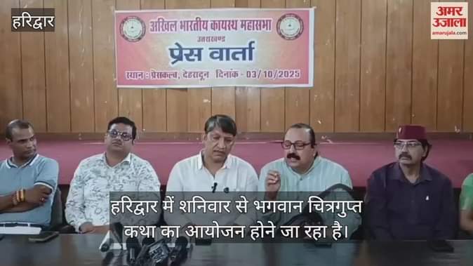 हरिद्वार में शनिवार से भगवान चित्रगुप्त कथा का आयोजन होने जा रहा है। जिसको लेकर प्रेस क्लब सभागार में अखिल भारतीय कायस्थ महासभा के पदाधिकारी ने पत्रकारों से वार्ता की।