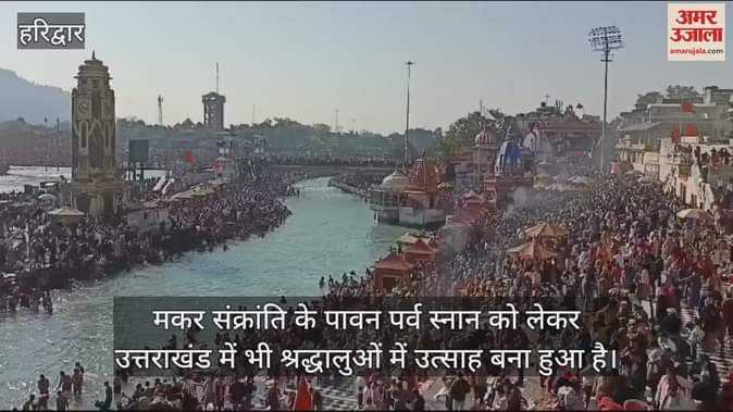 मकर संक्रांति के पावन पर्व स्नान को लेकर उत्तराखंड में भी श्रद्धालुओं में उत्साह बना हुआ है। हरिद्वार में भी तड़के से हरिद्वार ब्रह्मकुंड में स्नान करने को लेकर बड़ी संख्या में श्रद्धालु पहुंचे। वहीं, देव डोलियों ने भी स्नान किया।