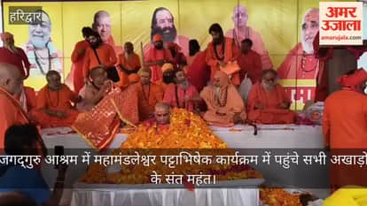 जगद्गुरु आश्रम में महामंडलेश्वर पट्टाभिषेक कार्यक्रम में पहुंचे सभी अखाड़ो के संत महंत।