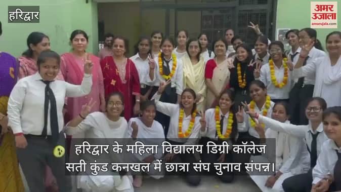 हरिद्वार के महिला विद्यालय डिग्री काॅलेज सती कुंड कनखल में छात्रा संघ चुनाव संपन्न। मतदान सफलता पूर्वक संपन्न हो गया। छात्रा संघ की अध्यक्ष सुगंधा बनी। नवनिर्वाचित छात्रा संघ की कार्यकारिणी को कॉलेज प्रशासन और छात्राओं का फूल-मालाओं से स्वागत किया गया।