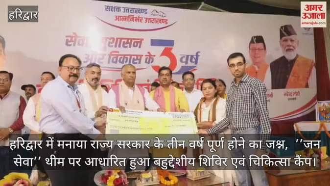 हरिद्वार में मनाया राज्य सरकार के तीन वर्ष पूर्ण होने का जश्न, ’’जन सेवा’’ थीम पर आधारित हुआ बहुद्देशीय शिविर एवं चिकित्सा कैंप। लाखों रुपये की सहायता राशि लाभार्थियों को बांटी गई।