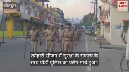 त्योहारी सीजन में सुरक्षा के संकल्प के साथ पौड़ी पुलिस का फ्लैग मार्च हुआ। वरिष्ठ पुलिस अधीक्षक पौड़ी लोकेश्वर सिंह के निर्देशन एवं अपर पुलिस अधीक्षक कोटद्वार एवं क्षेत्राधिकारी के नेतृत्व में त्योहारी माहौल में शांति, सौहार्द एवं कानून-व्यवस्था को सुदृढ़ बनाए रखने के उद्देश्य से पौड़ी पुलिस द्वारा कोटद्वार क्षेत्र में फ्लैग मार्च निकाला गया। इस दौरान कोटद्वार पुलिस टीम द्वारा मुख्य बाजार, बस अड्डा, झंडा चौक एवं अन्य भीड़भाड़ वाले मार्गों से होते हुए पैदल फ्लैग मार्च किया गया।