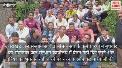 VIDEO : भीमताल में जल संस्थान कर्मियों ने वेतन और एरियर नहीं दिए जाने पर जमकर की नारेबाजी