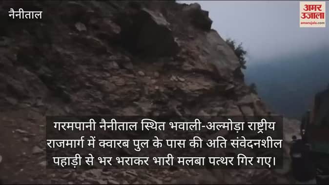 गरमपानी नैनीताल स्थित भवाली-अल्मोड़ा राष्ट्रीय राजमार्ग में क्वारब पुल के पास की अति संवेदनशील पहाड़ी से भर भराकर भारी मलबा पत्थर गिर गए। इस बीच बागेश्वर से हल्द्वानी की तरफ खड़िया लेकर जा रहा कैंटर खाई की ओर लटक गया। सड़क में यातायात ठप होने से दोनों ओर वाहनों की लंबी कतार लग गई। यात्री और वाहन चालकों को परेशानी का सामना करना पड़ा। खैरना पुलिस ने सड़क बंद होने पर अल्मोड़ा की तरफ जाने वाले वाहनों को बाया रानीखेत की तरफ भेजा, जिस कारण यात्रियों को 50 किमी अतिरिक्त सफर करना पड़ा। सुबह साढ़े नौ बजे सड़क नहीं खुलने से वाहन चालक और यात्री सड़क खुलने का इंतजार कर रहे।
