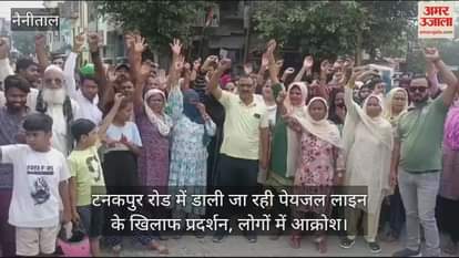 VIDEO : टनकपुर रोड में डाली जा रही पेयजल लाइन के खिलाफ प्रदर्शन, लोगों में आक्रोश