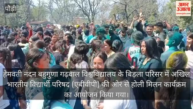 हेमवती नंदन बहुगुणा गढ़वाल विश्वविद्यालय के बिड़ला परिसर में अखिल भारतीय विद्यार्थी परिषद (एबीवीपी) की ओर से होली मिलन कार्यक्रम का आयोजन किया गया। कार्यक्रम में बड़ी संख्या में छात्र-छात्राएं शामिल हुए। छात्र-छात्राओं ने एक-दूसरे को गुलाल लगाकर होली की शुभकामनाएं दीं। आपसी भाईचारे का संदेश दिया। डीजे की धुन पर युवाओं ने जमकर नृत्य किया। परिसर में उत्साह और रंगों की छटा बिखर गई। आयोजकों ने कहा कि ऐसे कार्यक्रमों से विद्यार्थियों के बीच आपसी संवाद और सौहार्द बढ़ता है।