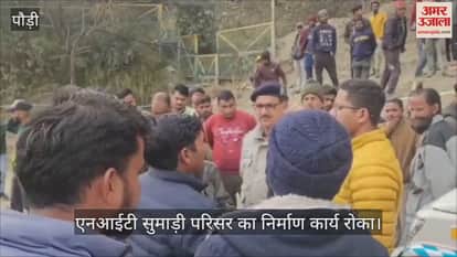 VIDEO : श्रीनगर में एनआईटी सुमाड़ी परिसर का निर्माण कार्य रोका, प्रदर्शन