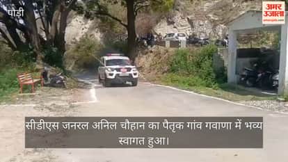 सीडीएस जनरल अनिल चौहान का पैतृक गांव गवाणा में भव्य स्वागत हुआ। उनका गांव में पहला आगमन है। उनके आगमन को लेकर ग्रामीणों में भारी उत्साह है। गांव के लोग बेसब्री से उनका इंतजार करते दिखे। शुक्रवार को पैतृक गांव गवाणा पहुंचने पर सीडीएस जनरल अनिल चौहान को लोगों ने भव्य स्वागत किया। गवाणा में वह पूजन समारोह में शामिल हुए। साथ ही देवलगढ़ स्थित सिद्धपीठ राजराजेश्वरी मंदिर में पूजा-अर्चना की।