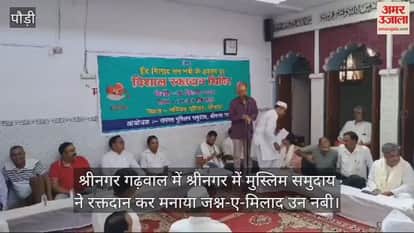 श्रीनगर गढ़वाल में श्रीनगर में मुस्लिम समुदाय ने रक्तदान कर मनाया जश्न-ए-मिलाद उन नबी। मस्जिद परिसर में किया गया रक्तदान शिविर का आयोजन। रक्तदान शिविर को लेकर लोगों में दिखा खासा उत्साह। आयोजित शिविर में 102 यूनिट रक्त एकत्र किया गया।