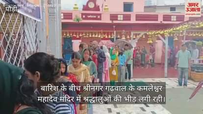 बारिश के बीच श्रीनगर गढ़वाल के कमलेश्वर महादेव मंदिर में श्रद्धालुओं की भीड़ लगी रही। जलाभिषेक के लिए दूर-दूर से पहुंचे भक्तों में उत्साह बना रहा। शिवालयों में दिनभर दर्शन पूजन का क्रम जारी रहा।