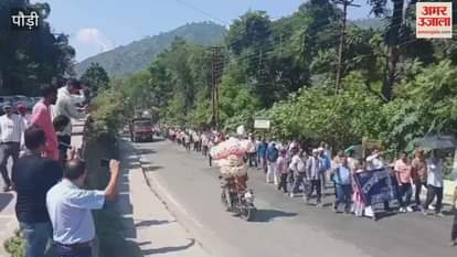 श्रीनगर...राजकीय शिक्षक संघ ने 34 सूत्रीय मांगों को लेकर निकाली महारैली