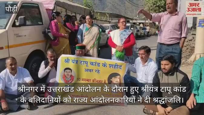 श्रीनगर में उत्तराखंड आंदोलन के दौरान हुए श्रीयंत्र टापू कांड के बलिदानियों को राज्य आंदोलनकारियों ने दी श्रद्धांजलि। बलिदानियों के सम्मान में शक्ति विहार में बने गेट को तोड़े जाने के विरोध में सरकार के खिलाफ किया प्रदर्शन। कहा यह राज्य आंदोलन के बलिदानियों का है अपमान।
