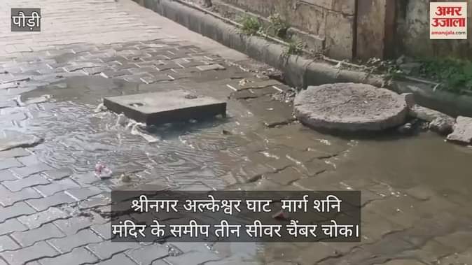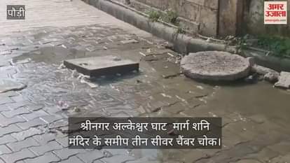 श्रीनगर अल्केश्वर घाट मार्ग के समीप तीन सीवर चैंबर चोक, सड़क पर बह रहा गंदा पानी